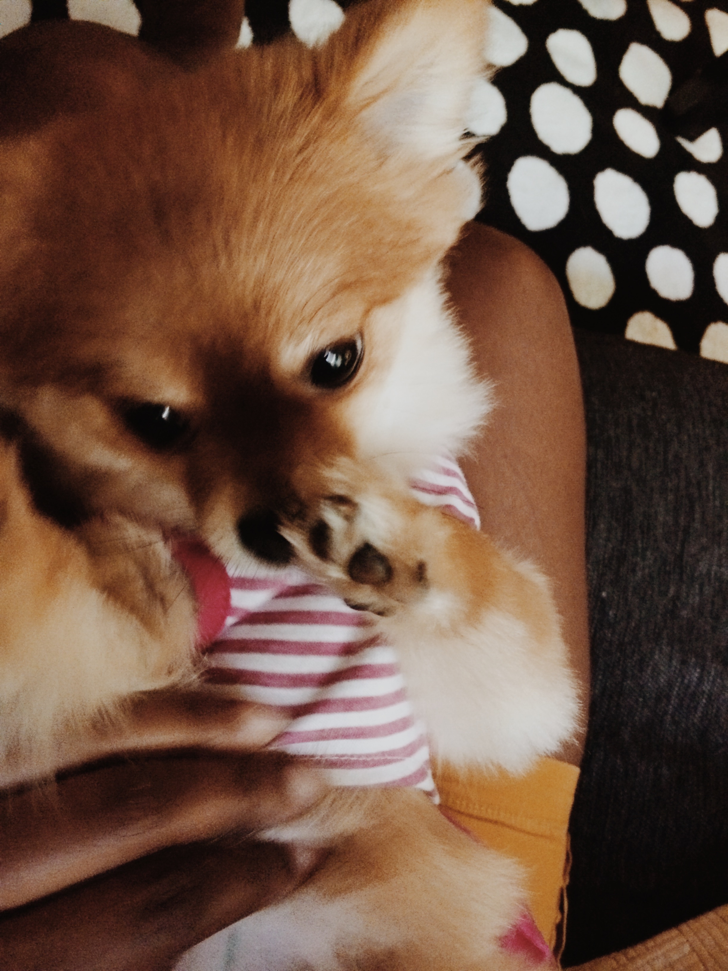 This is a frequent routine for us. Not only am I outsmarting her, I’m providing an outlet for her to release buildup energy. Besides, I would much rather have her release her energy during structured play than have her become too curious and mischievous that she gets into something she has no business in, like my closet chewing up my shoes. Yeah, I had to learn the hard way.