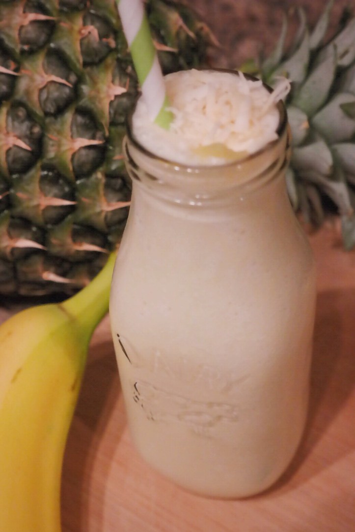 Are you in the mood for some spring cleaning? I’m not talking about your house, but your health. If so, join me and many others as we throw out our bad eating habits to make room for better ones–like this coconut, banana and pineapple smoothie.