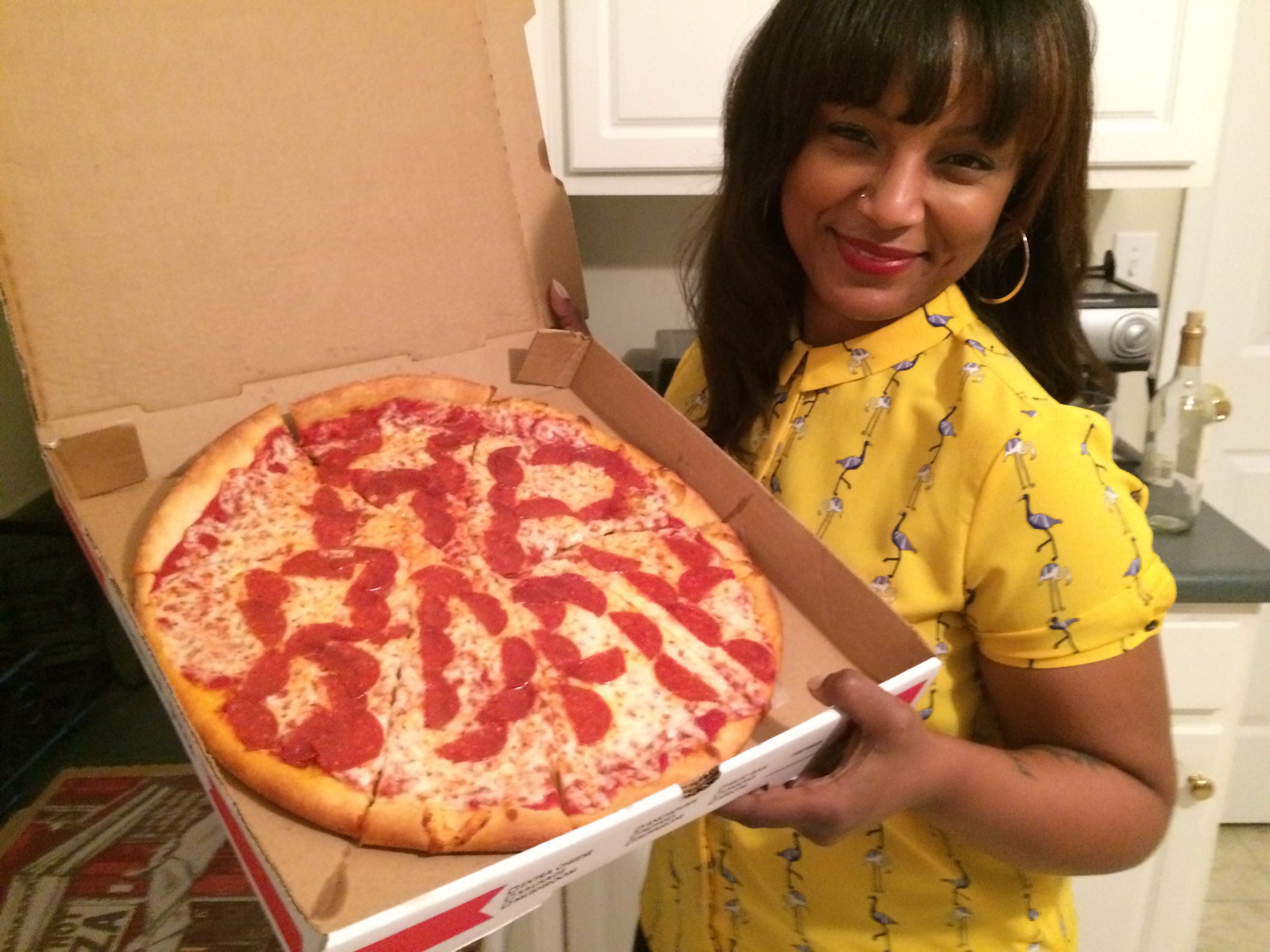 •Pizza party with my family at the crib.